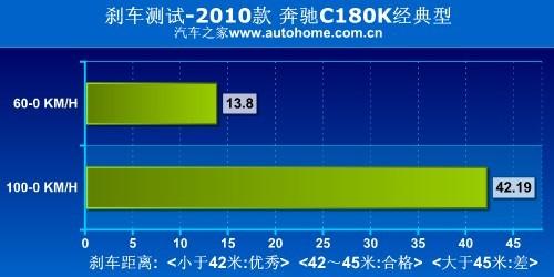 在我們對C180K的測試中,最終百公里加速時間為10.3秒,很遺憾沒有進入10秒以內(nèi),不過這個成績依然領先眾多2.4L自然吸氣發(fā)動機車型。剎車成績?yōu)?2.19米,按說算是個不錯的成績,但是相比奔馳家族的其他兄弟,這個成績就顯得有待提高了。油耗的表現(xiàn)比較出色,8.74升/百公里的表現(xiàn)對于一款加速在10秒左右的中型車來說還是很優(yōu)秀的。