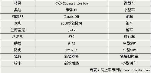 在上述表格中大部分廠家都是歐洲的豪華品牌或是相對小眾化的品牌,例如薩博和沃爾沃。這兩個品牌在中國市場的表現(xiàn)都不如其他歐系品牌,但是在歐洲市場中它們的銷售情況還是不錯的。2010年的巴黎車展沃爾沃將會帶來S60的旅行版車型V60,旅行款車型是歐洲消費者較為喜歡的款式能夠兼顧實用性和舒適性。另外,賓利、蘭博基尼、帕加尼也紛紛準備帶來旗下的全新跑車,贏得全球富豪們的目光。