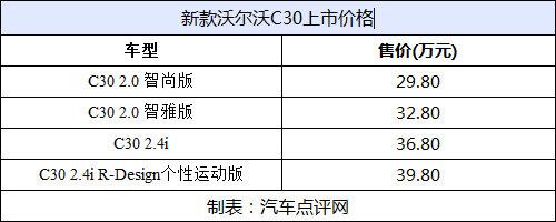 新款沃爾沃C30在車身外型上進(jìn)行了一些細(xì)微調(diào)整,使其更加運(yùn)動(dòng),并且車身顏色增加了動(dòng)感的火焰橙顏色,而動(dòng)力/傳動(dòng)系統(tǒng)則繼續(xù)沿用沃爾沃汽車的2.0L和2.4L發(fā)動(dòng)機(jī)作為動(dòng)力來源。