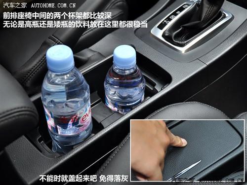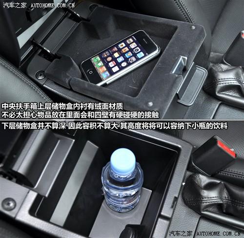 前排乘客可放飲料的位置很多,除了中間的兩個獨立杯架外,前車門板和中央扶手的下層都可以提供空間,當然還有那個碩大的手套箱。