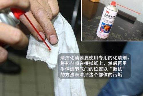 在早期,一般師傅使用化清劑的方式進(jìn)行清洗時,會直接朝節(jié)氣門內(nèi)部做噴灑的清潔動作。而這次我們使用擦拭的方式來進(jìn)行。這是因?yàn)榛鍎⿻g塑膠、橡膠類的材料,而且還會將所有的潤滑油通通溶解。所以噴灑的方式雖然面積可以更廣泛、但日久也會造成內(nèi)部機(jī)件的損傷,容易造成怠速步進(jìn)馬達(dá)、油封等問題。