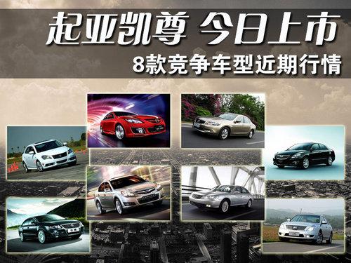 近年來(lái)隨著國(guó)家政策方面的逐漸開(kāi)放,許多進(jìn)口車型的價(jià)格已慢慢逼近合資品牌的價(jià)格。在中級(jí)車市場(chǎng)上,這樣的價(jià)格形式更加突出,進(jìn)口起亞方面宣布在8月19日推出一款中級(jí)車——凱尊,其預(yù)計(jì)的售價(jià)21.98萬(wàn)元起,相信在其退出后,一定會(huì)給同級(jí)合資品牌車型帶來(lái)不小的壓力。與此同時(shí),我們也整理出了8款同級(jí)車的近期行情,供欲購(gòu)車消費(fèi)者參考。