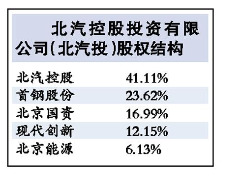 據(jù)昨天首鋼股份的投資公告,擬以其持有的北京汽車投資有限公司(下稱“北汽投”)全部股權(quán)及部分現(xiàn)金投資參與發(fā)起設(shè)立“北京汽車股份有限公司”(暫定名,下稱“北汽股份”),預(yù)計(jì)持股比例為18.31%。