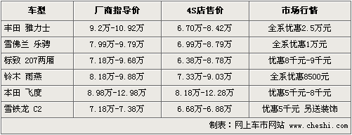 隨著國(guó)家政府推行小排量車(chē)的補(bǔ)貼政策,及人們對(duì)日常小型車(chē)的需求,各個(gè)廠商分別看重了這一市場(chǎng)的發(fā)展?jié)摿Γ鸩窖邪l(fā)推出適合中國(guó)市場(chǎng)的小型車(chē)。8月30日,東風(fēng)日產(chǎn)也正式推出了A0級(jí)車(chē)型——瑪馳,從而日產(chǎn)也填補(bǔ)了在小型車(chē)系列中的空缺,與此同時(shí)我們選出了6款與瑪馳同級(jí)別的車(chē)型,看看這些車(chē)在近期都有哪些優(yōu)惠。