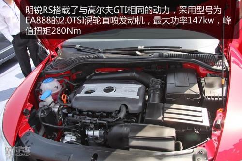 明銳RS搭載了與高爾夫GTI相同的發(fā)動(dòng)機(jī)和變速箱,動(dòng)力上采用EA888系列的2.0TSI渦輪直噴發(fā)動(dòng)機(jī),最大功率147kw,峰值扭矩280Nm,同樣匹配型號(hào)為DQ250的六速DSG雙離合變速器,這一動(dòng)力組合用在高爾夫GTI上的加速成績(jī)?yōu)?.1秒。
