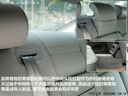 5座版車型后排中央可乘坐一名成員,靠背可以拉出一個碩大的頭枕為中間的乘員提供頸部的放松與安全保護,但是由于傳動軸的存在地板上的凸起過于嚴(yán)重,所舒適性會有折扣;中間扶手寬大厚實,這也是豪華行政級轎車的最基本要素。