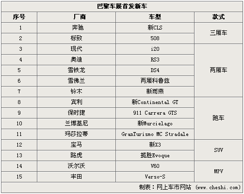 2010巴黎車展將于9月底正式開幕,本屆車展新車云集,數(shù)十款新車將在車展全球首發(fā),包括奔馳、寶馬、標(biāo)致等歐洲本土廠商,也有雪佛蘭、豐田等海外廠商。而這次在開幕前我們所盤點(diǎn)的是巴黎車展首發(fā)后將引入國內(nèi)銷售的新車,預(yù)計(jì)將有15款首發(fā)車后續(xù)引入。