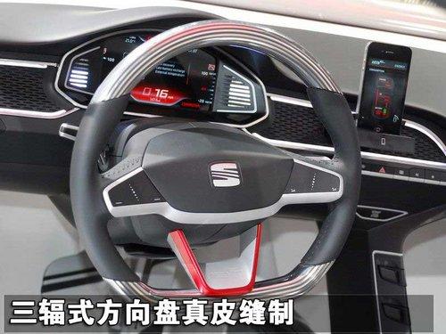 西亞特IBE概念車采用的三輻式運(yùn)動(dòng)型方向盤設(shè)計(jì),灰色格調(diào)下配有紅色點(diǎn)綴,很有性能車的感受,材質(zhì)上采用真皮縫制手感會(huì)非常不錯(cuò)。