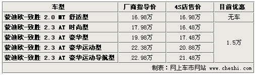據(jù)4S店銷(xiāo)售人員介紹:目前蒙迪歐致勝全系優(yōu)惠1.5萬(wàn)元,現(xiàn)車(chē)較充足,但顏色不是非常齊全,只有銀色、灰色、黑色現(xiàn)車(chē)。如預(yù)定需等10天至20天左右,現(xiàn)車(chē)到店時(shí)間較短。2.0車(chē)型目前不接受預(yù)訂,廠家不給予排產(chǎn),2.3升至尊版車(chē)型目前也已停產(chǎn),請(qǐng)用戶(hù)根據(jù)自己的需求選擇車(chē)輛。