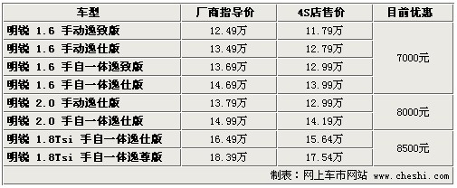 據(jù)4S店銷售人員介紹:目前明銳全系最高優(yōu)惠8500元。1.6升車型優(yōu)惠已達7000元,較之前優(yōu)惠幅度增加了1000元。2.0升車型優(yōu)惠仍為8000元,1.8TSI的兩款車型優(yōu)惠8500元,較之前有所縮水。雖然1.6升車型優(yōu)惠幅度較之前有所增加,但目前全系依然沒有現(xiàn)車,訂車最短需等一個半月,最長需等3個月。不過,某些店內(nèi)有很少量現(xiàn)車,是訂車客戶已退車輛。但優(yōu)惠幅度較小,所以建議不著急用車的朋友預定車輛可獲得以上優(yōu)惠。如在店內(nèi)做裝飾還可打8折,雖然折后裝飾價格仍有些偏高,但產(chǎn)品質(zhì)量可以保證。