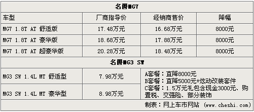 據(jù)MG名爵經(jīng)銷(xiāo)商處銷(xiāo)售人員介紹,目前MG7和MG3 SW都有充足的現(xiàn)車(chē),只有部分車(chē)型需要預(yù)訂,MG7最高可優(yōu)惠8千元,而MG3 SW則有三重好禮可選其一,當(dāng)然最直接的就是直降8千元,而1.5萬(wàn)元的大禮包的優(yōu)惠也挺大的,如果你喜歡個(gè)性車(chē)就選擇炫動(dòng)改裝還可在優(yōu)惠五千元。