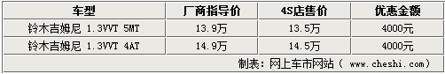 鈴木微型SUV-吉姆尼的動力源于鈴木運(yùn)轉(zhuǎn)平穩(wěn)的M13A DOHC發(fā)動機(jī),該發(fā)動機(jī)以其反應(yīng)靈敏、高燃油效率而聞名于世,且頗受年輕消費(fèi)者的青睞。網(wǎng)上車市網(wǎng)站了解到,目前在北京地區(qū)購買進(jìn)口鈴木吉姆尼可以得到4000元的現(xiàn)金優(yōu)惠。具體詳情如下: