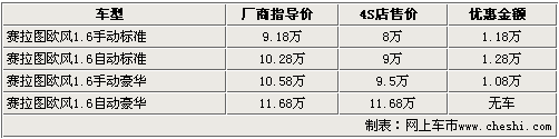 東風(fēng)悅達(dá)起亞旗下的首款兩廂轎車—賽拉圖歐風(fēng),憑借著歐洲車型的設(shè)計(jì)理念和圓潤飽滿的外形,得到消費(fèi)者的關(guān)注。近日記者了解到:賽拉圖歐風(fēng)將推出1.5排量車型,屆時1.6車型將全部停產(chǎn)。根據(jù)網(wǎng)上車市價格監(jiān)測系統(tǒng)顯示,目前銷售的賽拉圖歐風(fēng)最高優(yōu)惠1.3萬元。具體車型見下表: