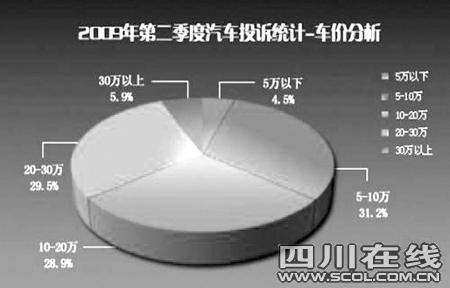 1、緊湊型車和中型車是二季度車型投訴的重點,同時,投訴車型有向中高級車發(fā)展趨勢,其中20萬-30萬(整車售價)車型的投訴增加明顯,占到29.5%,多集中于異響和輪胎問題上。