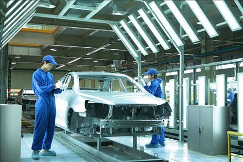 總裝車間是最能體現(xiàn)EC718生產(chǎn)現(xiàn)代化水平的一個(gè)地方。這個(gè)車間由于采用了模塊化、集成化裝配,因此廠房利用率特別高,從而使寧波基地實(shí)現(xiàn)了“零土地” 技改就建起了雙班年產(chǎn)5萬輛產(chǎn)能的現(xiàn)代化廠房。如:底盤的前、后橋,發(fā)動(dòng)機(jī),變速器都是先模塊化裝配后,再用由電腦控制的全自動(dòng)的AGV小車將各總成裝到車上。AGV小車沿著提前設(shè)計(jì)好的磁感應(yīng)軌道,根據(jù)流水線節(jié)拍自動(dòng)調(diào)整自動(dòng)上線的,同時(shí)還應(yīng)用了很多輔助的機(jī)械手,分別裝輪胎、儀表臺(tái)、座椅等,不僅提升了產(chǎn)品質(zhì)量,還大大減輕了工人的勞動(dòng)化強(qiáng)度。另外,還有一點(diǎn)與老工廠生產(chǎn)線完全不同,就是多了一條輔助生產(chǎn)線——車門分裝線,即涂裝好的車身與四門在總裝上線前是分開的,到總裝的最終線才最后合成起來的,這樣更方便裝配儀表臺(tái)、座椅等汽車內(nèi)部的大件。