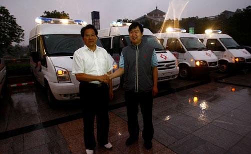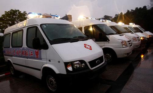 江鈴緊急趕制的5輛福特全順救護(hù)車一到達(dá)災(zāi)區(qū),立即被派往受災(zāi)前線救護(hù)受災(zāi)民眾