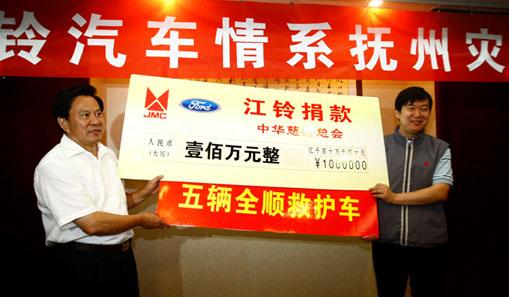中新網(wǎng)6月25日電 在江西等地發(fā)生的嚴(yán)重洪澇災(zāi)害,造成了巨大的人員財(cái)產(chǎn)損失,牽動(dòng)著國人的心。江鈴汽車股份有限公司全體員工心系災(zāi)區(qū)人民,在第一時(shí)間作出反應(yīng),得到福特汽車公司和江鈴集團(tuán)的支持,迅速組織賑災(zāi)捐贈(zèng),在公司董事長王錫高指示下,公司緊急捐贈(zèng)5輛災(zāi)區(qū)急需的福特全順救護(hù)車并捐款100萬元人民幣,總計(jì)200萬元的款物給受災(zāi)最嚴(yán)重的撫州洪澇災(zāi)區(qū)。