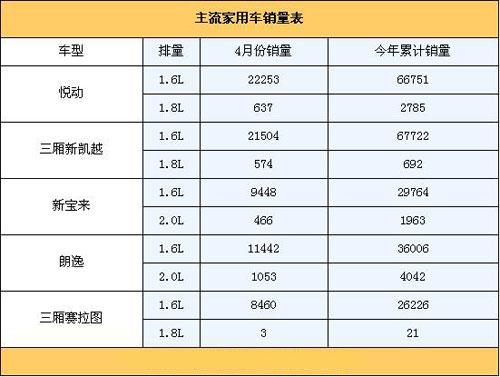 上表所列的都是銷(xiāo)售非;鸨闹髁骷矣棉I車(chē)。悅動(dòng)剛剛在4月份拿到了單車(chē)銷(xiāo)量冠軍的頭銜,我們可以看到它超過(guò)兩萬(wàn)輛的月銷(xiāo)量當(dāng)中1.8L車(chē)型僅僅貢獻(xiàn)了不到700輛,作用微乎其微;同樣月銷(xiāo)量超過(guò)兩萬(wàn)輛的三廂凱越與悅動(dòng)的情況如出一轍,1.8L車(chē)型同樣受到市場(chǎng)的冷落。