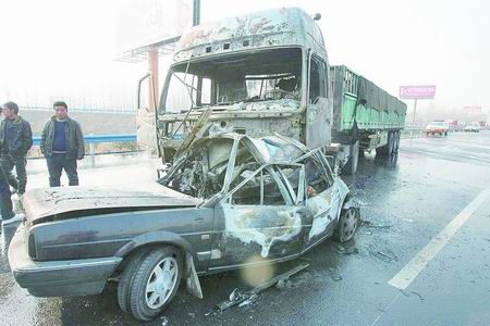 無獨有偶,2010年歲首,在京港澳高速公路轉(zhuǎn)連霍高速公路下道口處又發(fā)生一起追尾事故,所幸無人員傷亡。