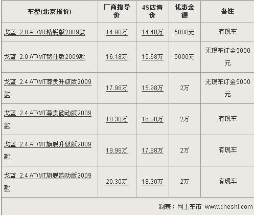 三菱戈藍是東南三菱研發(fā)的一款新一代中高檔車,但是戈藍的價格卻沒有定的那么高,14.98-20.30萬元的價格區(qū)間,讓很多消費者都對戈藍產生了興趣。近日,網(wǎng)上車市走訪了北京地區(qū)東南三菱4S店,發(fā)現(xiàn)戈藍目前有大幅度的優(yōu)惠活動,具體信息請參考下表: