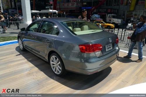 新一代Jetta外觀上采用了大眾新的家族式設計元素,標識性的設計就是前格柵與前大燈連成一線。與高爾夫6不同的是,新Jetta前大燈變得更加不規(guī)則,新車型下進氣格柵與高爾夫6相似,但能讓人明顯感覺到的變化是,新Jetta前臉采用了大量平行的線條,設計更加簡約硬朗。