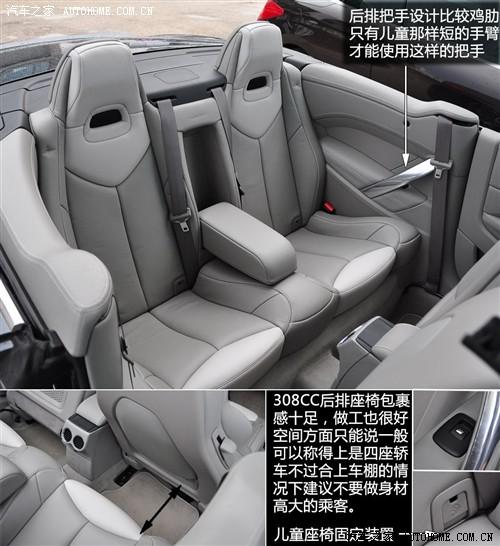 308CC繼承了307 CC的空間設(shè)計,可以稱得上是一款標準的四座硬頂敞篷轎車,不過在閉合硬頂?shù)臅r候后座只適合中等身材以下的乘客乘坐。對于這種個性轎車能夠順利容下四個人我們已經(jīng)感到欣慰了。