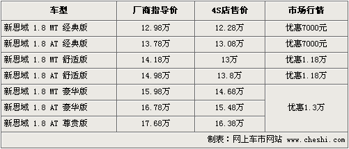 思域一直是東風(fēng)本田的主打轎車,憑借其時尚的外觀設(shè)計和精細(xì)的內(nèi)飾做工以及良好的燃油性,已經(jīng)贏得了市場的普遍認(rèn)可。根據(jù)網(wǎng)上車市價格監(jiān)測系統(tǒng)顯示,目前思域的優(yōu)惠幅度較上個月有所增大,最高可優(yōu)惠現(xiàn)金1.3萬元,現(xiàn)車較為齊全。具體車型價格行情如下:
