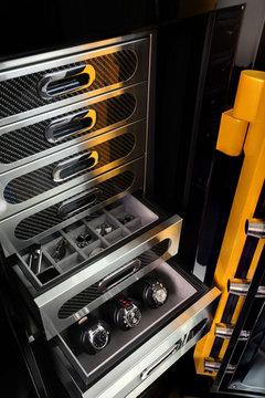 蘭博基尼特別版保險(xiǎn)箱內(nèi)部擁有很多分層,可以方便、安全的存放不同的物品。如果您是蘭博基尼的車主,在配一款如此特別的保險(xiǎn)箱,必然會(huì)非常惹人羨慕。不過,及時(shí)你將貴重的鐘表、首飾及珠寶等物品放入其中,您也仍然可以放心的駕駛自己的愛車去遠(yuǎn)郊兜風(fēng)。