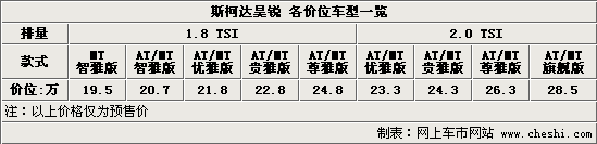 上海大眾斯柯達(dá)推出的全新B級(jí)車Superb昊銳,將于8月18日上市宣布價(jià)格。目前首批展車已經(jīng)運(yùn)抵北京部分斯柯達(dá)4S店,近期部分經(jīng)銷商還將舉辦小規(guī)模的試駕賞車活動(dòng)。與此同時(shí)記者也以消費(fèi)者的身份詢問(wèn)了北京地區(qū)多家斯柯達(dá)授權(quán)經(jīng)銷商,通過(guò)詢問(wèn)我們得知了斯柯達(dá)昊銳的預(yù)售價(jià)格區(qū)間為19.5-28.5萬(wàn)元,共分為9款車型: