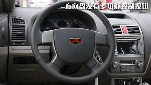 帝豪EC718-RV的方向盤采用皮革包裹,看上去顯得更有檔次,但這款車的方向盤上并沒有設(shè)計多功能控制按鈕,這一點比較可惜。方向盤左右兩側(cè)依然是傳統(tǒng)的大燈、轉(zhuǎn)向燈、雨刷器的控制桿。