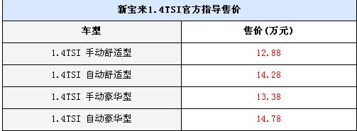 2010年6月10日,一汽-大眾2011款新寶來的1.4T車型正式上市,售價(jià)區(qū)間在:12.88萬-14.78萬元。具體的車型售價(jià)請(qǐng)見下表: