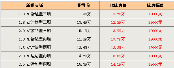 筆者日前走訪北京長(zhǎng)安福特4S店時(shí)獲悉,目前新福克斯優(yōu)惠又提升2000元,全系優(yōu)惠1.2萬(wàn)元,由于新嘉年華的上市,商家為了留出庫(kù)存故加大了新?怂沟淖尷。