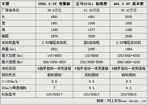 而在動力配置方面,三款車分別為2.5T渦輪增壓、2.5L直六、2.0T增壓發(fā)動機,但從數(shù)據(jù)來看S80L的2.5T發(fā)動機的優(yōu)勢比較明顯,但0-100km/h加速方面A6L更強僅為6.4S,而寶馬5系則要9.4S。而在驅(qū)動形式方面,S80L和A6L都為前輪驅(qū)動,而寶馬5系則為后輪驅(qū)動。