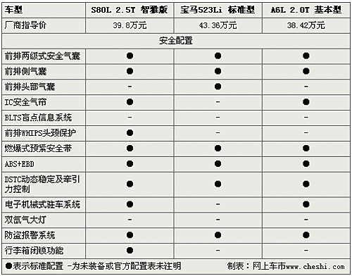 在安全配置方面,三款加長豪華車都標(biāo)配前排氣囊、側(cè)氣囊防護系統(tǒng),不過S80L和A6L還裝備了側(cè)氣簾,而寶馬5則配有頭部安全氣囊。除此之外,S80L還標(biāo)配了前排頭頸保護系統(tǒng),這在發(fā)生追尾事故時能起到很好的保護作用,在最新的歐洲NCAP測試中已經(jīng)加入了追尾測試,沃爾沃憑借著前排頭頸保護系統(tǒng)在這個單項測試中一直排在首位。整體來看,S80L、A6L、寶馬5系在安全配置方面基本相當(dāng)。