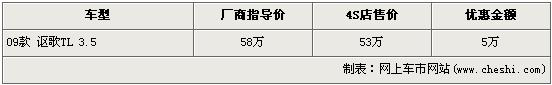 據(jù)4S店銷售人員介紹,在售的只有09款謳歌TL 3.5一種車型,廠商指導(dǎo)價為58萬元,F(xiàn)在購買09款謳歌TL3.5的消費(fèi)者可以享受到5萬元的現(xiàn)金優(yōu)惠,經(jīng)優(yōu)惠后售價從58萬元下降到了53萬元。4S店內(nèi)現(xiàn)車比較齊全,消費(fèi)者有一定的挑選空間。