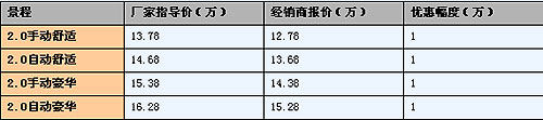 近日從雪佛蘭4S店了解到:景程現(xiàn)全系優(yōu)惠1萬元,但手動擋基本沒有現(xiàn)車需預定。