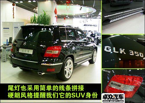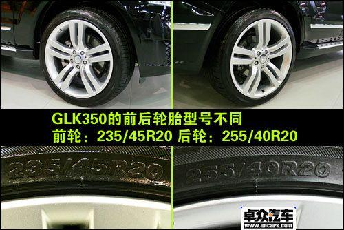 GLK大燈同樣采用簡單的直線條設計,只是邊角處加入了凌厲張揚的元素,看上去很像鷹眼,非?。這就是它“硬派”一面。而之所以說它“公路”,則是在它的總體定位——奔馳GLK是針對寶馬X3推出的緊湊型SUV車型,底盤懸掛系統(tǒng)以及動力配備都與X3類似。GLK350前后輪胎采用不同的尺寸,前輪采用較窄的235/45R20,后輪的則是稍寬的255/40R20,這樣的設計也是為了提升公路性能。