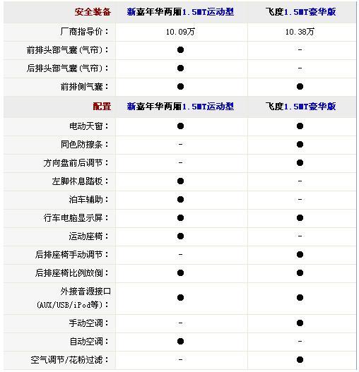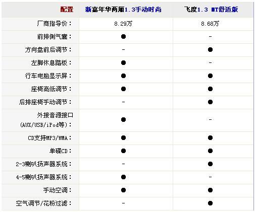 對應(yīng)飛度1.3MT手動(dòng)型的是新嘉年華1.3MT時(shí)尚型,兩者價(jià)格相差3900元,新嘉年華以一項(xiàng)主要的被動(dòng)安全配置出——即前排側(cè)氣囊。此外,還多出了外接音頻接口和兩個(gè)揚(yáng)聲器,少了方向盤前后調(diào)節(jié)、后排座椅角度可調(diào)以及花粉過濾。