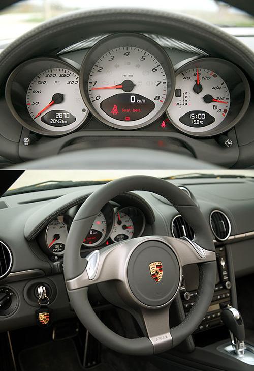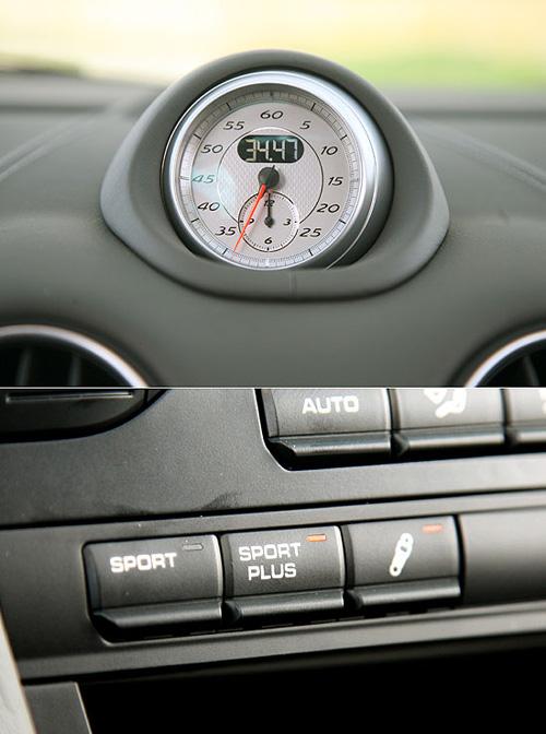而中控臺上方的指針式馬表,正是在911小改款上所試用過的Sport Chorono Package Plus系統(tǒng),這次保時(shí)捷亦提供Boxster的車主選購。同樣的,使用者只要按下中抬臺上的Sport Plus按鍵,便可以在計(jì)算機(jī)的協(xié)助下,享受6000轉(zhuǎn)無失誤起步以及性能化的換檔控制。