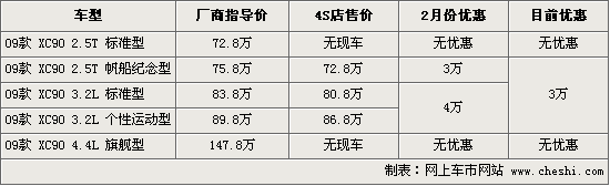 據(jù)沃爾沃4S店銷售人員介紹,目前銷售的沃爾沃XC90均是09款新車,其中2.5T帆船紀(jì)念版車型和3.2兩個排量車型可優(yōu)惠現(xiàn)金3萬元,其他2.5T標(biāo)準(zhǔn)版和4.4旗艦版沒有優(yōu)惠,F(xiàn)車方面,4S店有藍(lán)色款現(xiàn)車供應(yīng),個別款顏色需要消費(fèi)者先行預(yù)定。