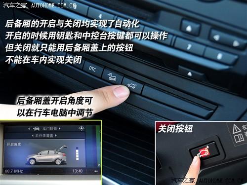 在音響操作區(qū)域下面有四個(gè)按鍵分別是倒車(chē)?yán)走_(dá)開(kāi)關(guān)、DTC開(kāi)關(guān)、下坡輔助開(kāi)關(guān)和后備廂開(kāi)啟按鈕。輕輕一按,X6的后備廂蓋就可以自動(dòng)打開(kāi),但再輕輕一按,卻不會(huì)自動(dòng)關(guān)閉,必須要下車(chē)去按后備廂蓋上的開(kāi)關(guān)才可以關(guān)閉,在行車(chē)電腦中可以調(diào)節(jié)后備廂蓋的開(kāi)啟角度。