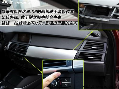 當(dāng)然不會(huì),X6的手套箱開(kāi)關(guān)在中央出風(fēng)口的下面,輕輕一按,副駕駛前面的鋁質(zhì)面板和塑料面板就會(huì)分別上下開(kāi)啟,呈現(xiàn)出里面并不大的控件。
