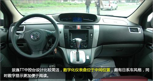 景逸TT的儀表盤位于中控的正中央,紅色的背光特別醒目,發(fā)動(dòng)機(jī)轉(zhuǎn)速、車輛時(shí)速、油料情況、音響、空調(diào)控制等信息都能得到充分的顯示。中控臺(tái)上采用人機(jī)工程學(xué)原理設(shè)計(jì)的各種按鍵,簡(jiǎn)單易用,處處體現(xiàn)了人性化關(guān)懷的設(shè)計(jì)元素。而且,“景逸TT”換擋桿也移至了中控臺(tái)上,不僅使用順手便利,更為駕駛員右側(cè)騰出了更大的活動(dòng)空間。