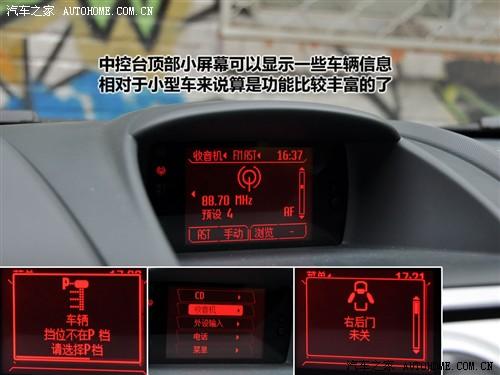 中控臺(tái)頂部的顯示屏雖然很小,但是在小型車中還是不多見的,而且功能也比較豐富,包括時(shí)間、音頻、車輛信息和一些簡單功能設(shè)置。比如可以調(diào)節(jié)音效,收音機(jī)的選臺(tái)存臺(tái),CD播放等,基本上以音頻信息為最有用的。此外,還有車輛警示信息,比如車門未關(guān)、自動(dòng)擋擋位沒在P擋等,而且警示信息顯示時(shí)還有紅色進(jìn)度條一直在行進(jìn),進(jìn)度條結(jié)束了信息也就不顯示了。