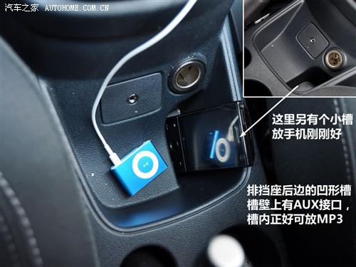 排擋座的后面是一個(gè)凹槽,槽壁上是AUX接口和電源。如果接MP3就剛好可以把播放器放在這個(gè)槽內(nèi),很方便。另外,右邊還有一個(gè)更深的槽,恰好是一個(gè)手機(jī)的寬度,放進(jìn)去一試果然非常合適;蛘甙袽P3放在深槽里,淺槽內(nèi)還能放些零錢票據(jù)之類的也不錯(cuò)。