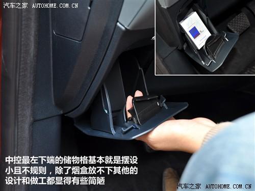 中控臺左下方的那個(gè)儲物格是在很多車型上都有設(shè)計(jì),而新嘉年華的這個(gè)可以開關(guān)的儲物盒基本可以算是個(gè)擺設(shè),一是容積很小,打開看著形狀很不規(guī)則,里面只能放一個(gè)煙盒,其他甚至連駕照或行駛本都放不進(jìn)去。二是模具給人比較簡陋。雖說有總是好過沒有,但如果能做得更細(xì)致更實(shí)用些不是更好么!