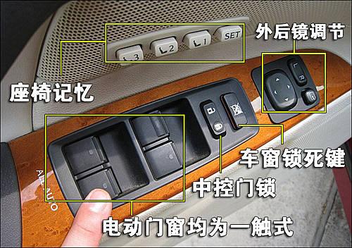 IS300的四門車窗都為一觸式升降設(shè)計(jì),后視鏡采用電動(dòng)調(diào)節(jié),并且具有自動(dòng)折疊功能。車門內(nèi)板上配有座椅記憶共能。