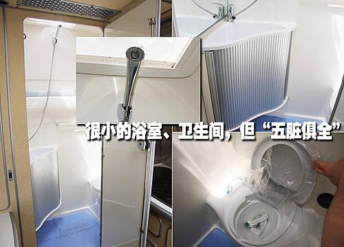 麻雀雖小但五臟俱全,房車雖然比不上房子但是勝似一個(gè)溫馨的家。在房車的后部,獨(dú)立設(shè)計(jì)的衛(wèi)生間以及浴室真的是太周到了,這里的每一件衛(wèi)具都是為了房車緊湊的空間而特殊設(shè)計(jì)的。