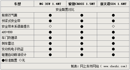 跨界家用轎車不僅需要優(yōu)良的動力,優(yōu)秀的操控反應,其安全性能的表現(xiàn)也是必不可少的條件之一。三款車型均通過多項完善的配置增加安全系數(shù),不過即將上市的駿捷CROSS憑借細節(jié)表現(xiàn),如安全帶語音提示等設計令乘員的安全感明顯提升。