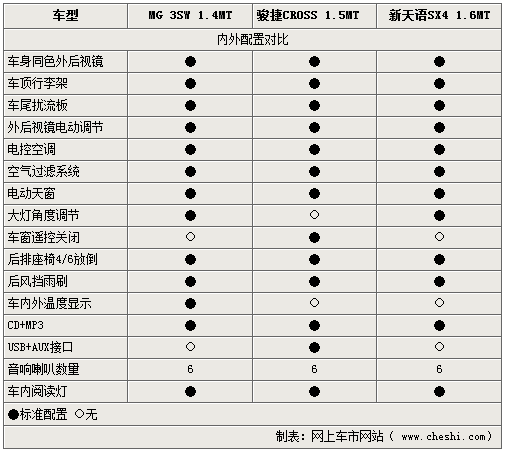 為了令駕乘者得到更多的便利,三車均在內(nèi)外設計了多項豐富便利的配置,在車輛外部的設計方面三車均有自己的特點,在保證了高性能的前提下,多項豪華配置均出現(xiàn)在三款跨界車型之上,內(nèi)部的多項設計對乘員的舒適及娛樂需要兩者也都考慮的相當周全,帶MP3的CD播放器以及自動空調(diào)等一應俱全。